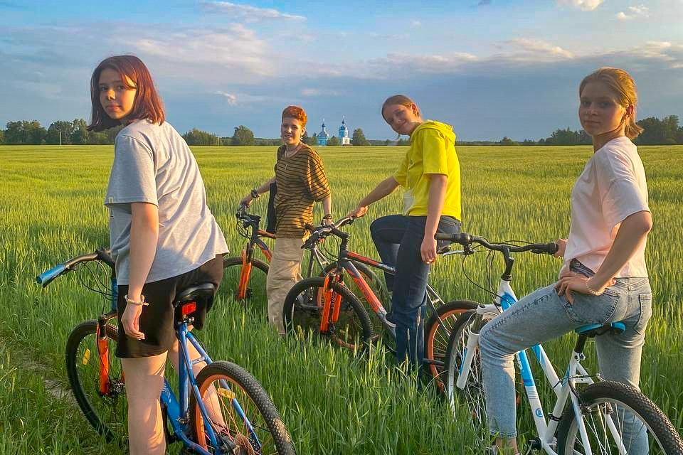 У нас солидный парк велосипед, которые мы используем для исследования нашей немаленькой территории. Душевная музыка из колонки, закат, поле, лес, ветер в лицо.